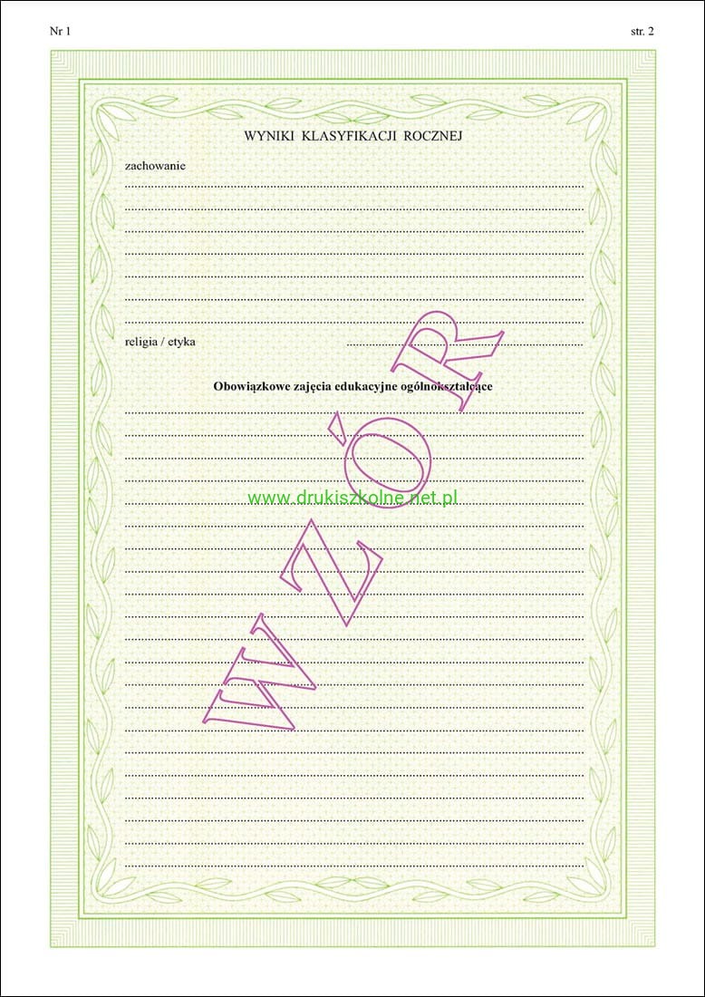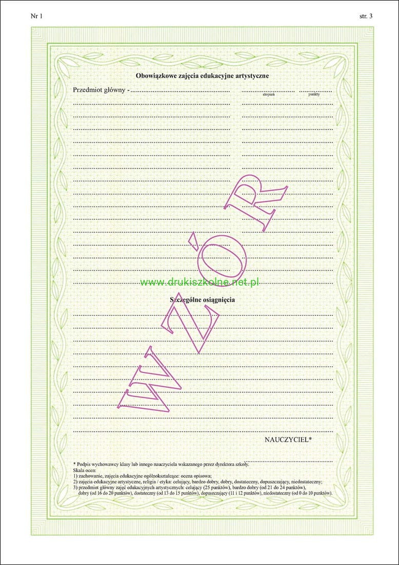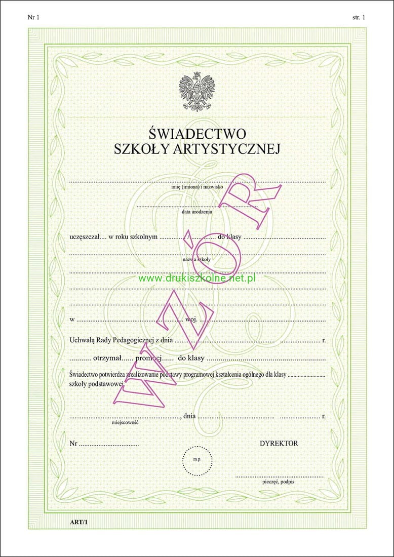 ART/1 Świadectwo promocyjne
