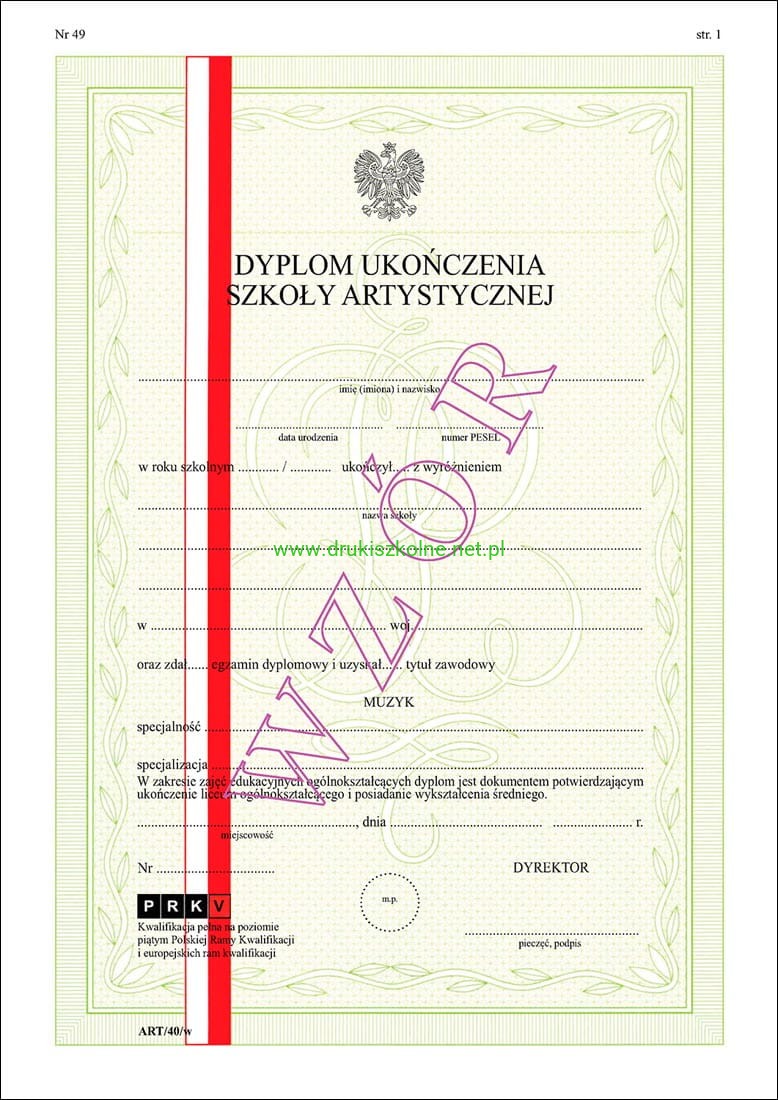 ART/40/w Dyplom ukończenia
