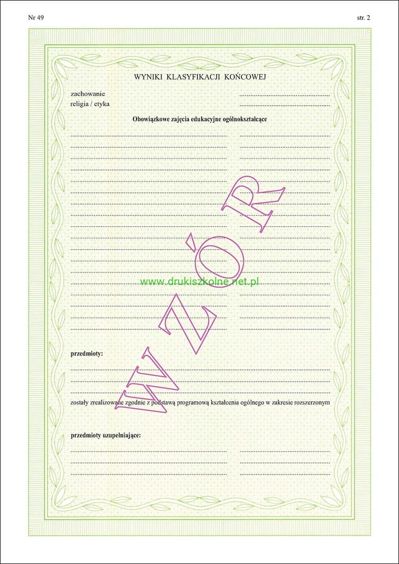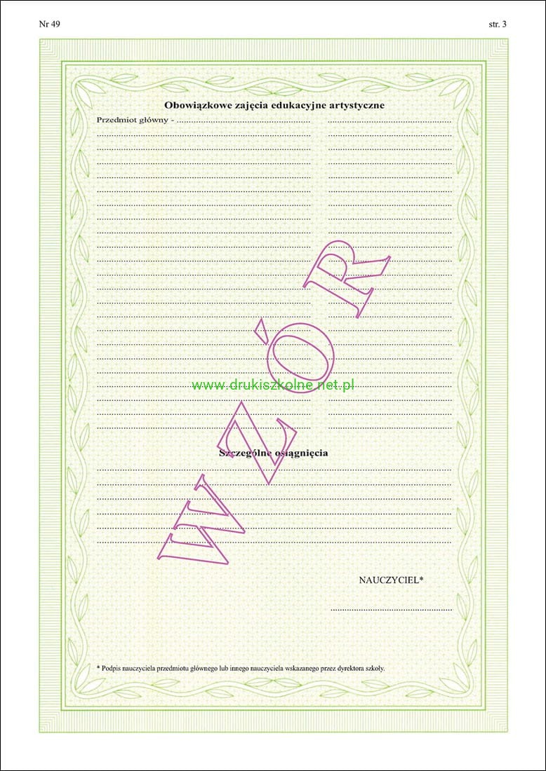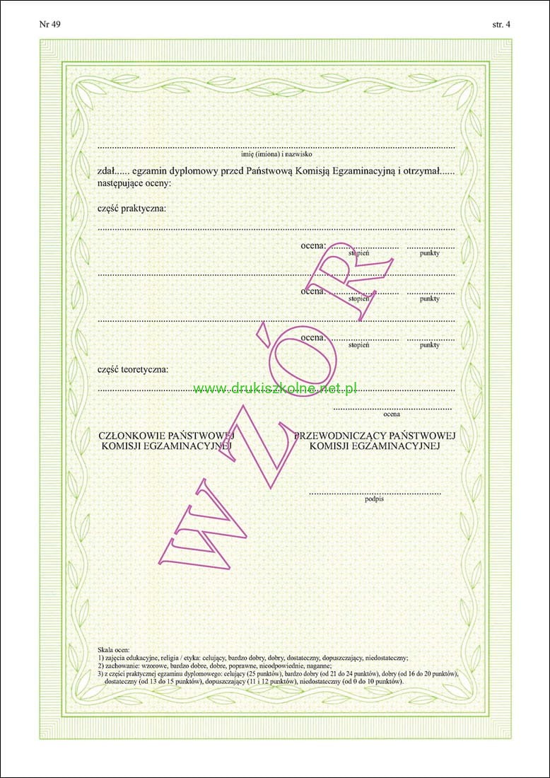 ART/40 Dyplom ukończenia z wyróżnieniem dla uczniów ogólnokształcącej szkoły muzycznej II stopnia