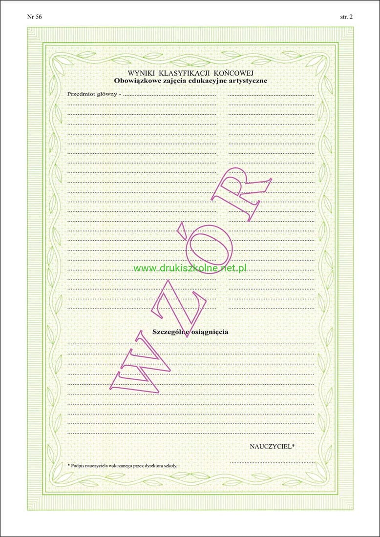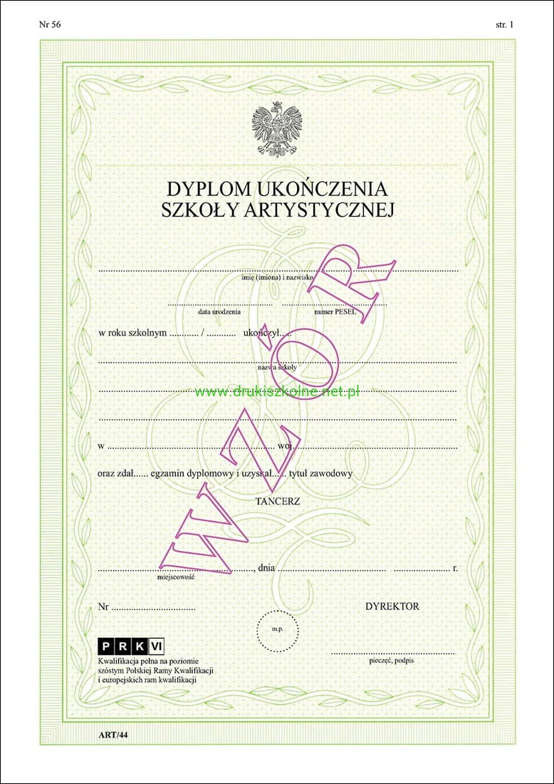 ART/44 Dyplom ukończenia dla uczniów szkoły sztuki tańca