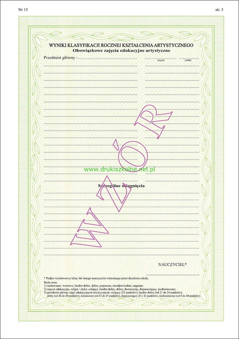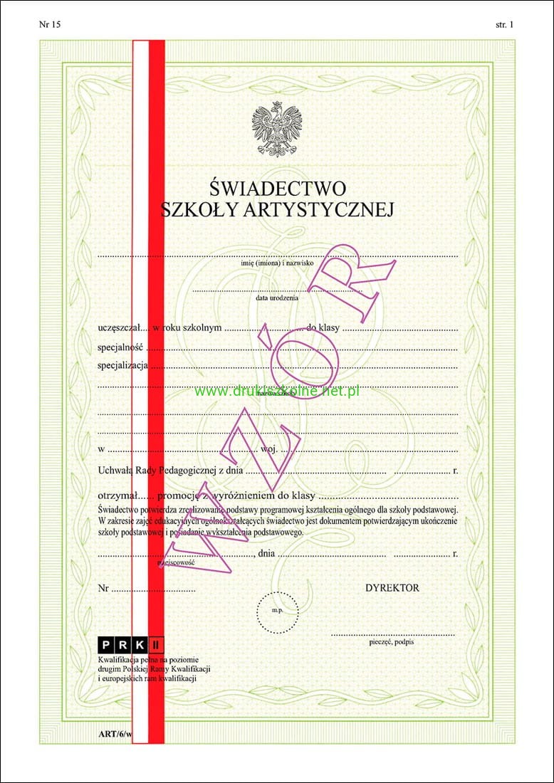 ART/6/w Świadectwa promocyjne z wyróżnieniem dla dla uczniów: