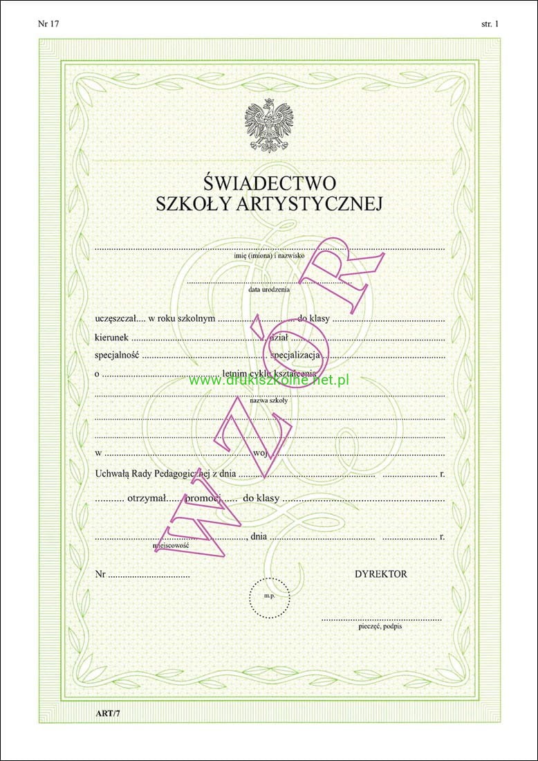 ART/7 Świadectwo promocyjne