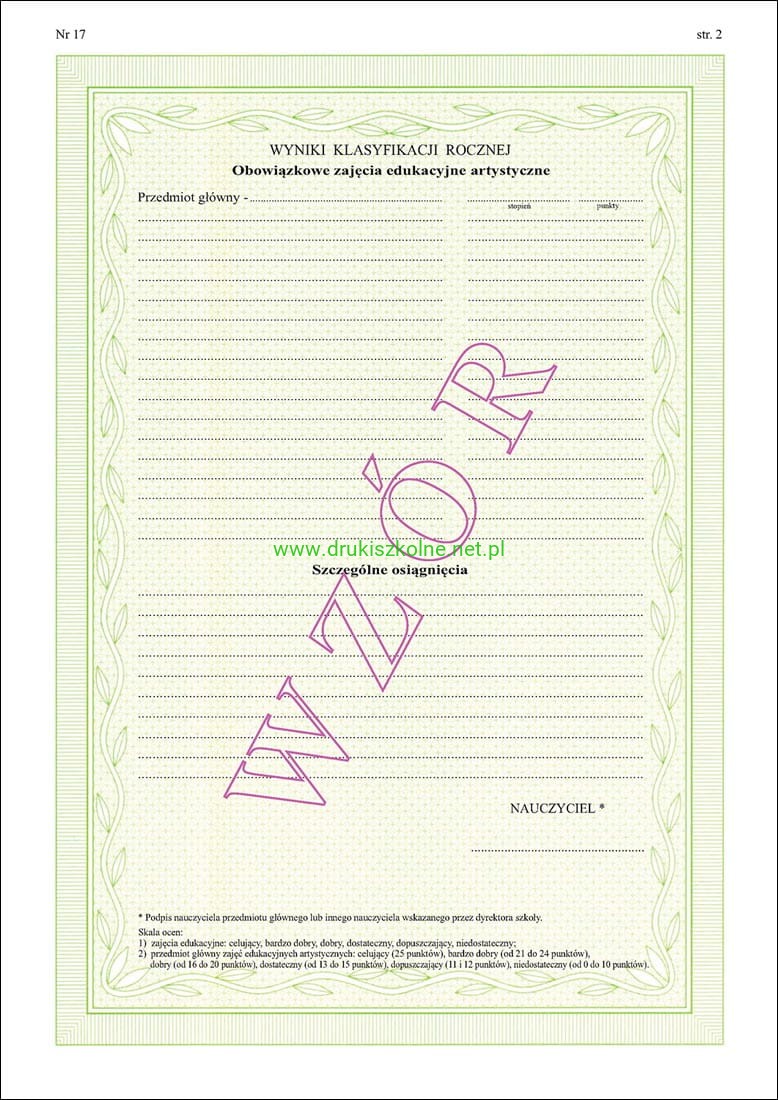 ART/7 Świadectwa promocyjne dla uczniów: