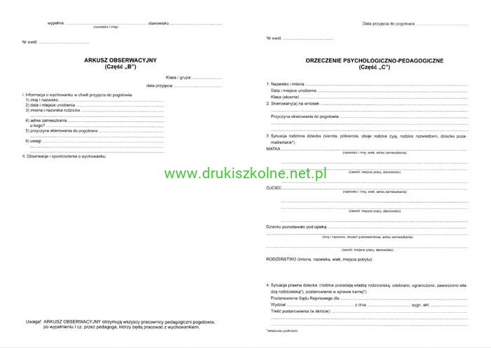 Arkusz obserwacyjno-kwalifikacyjny dziecka