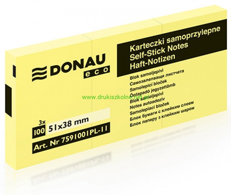 Bloczek samoprzylepny DONAU Eco, 38x51mm, 1x100 kart., jasnożółty