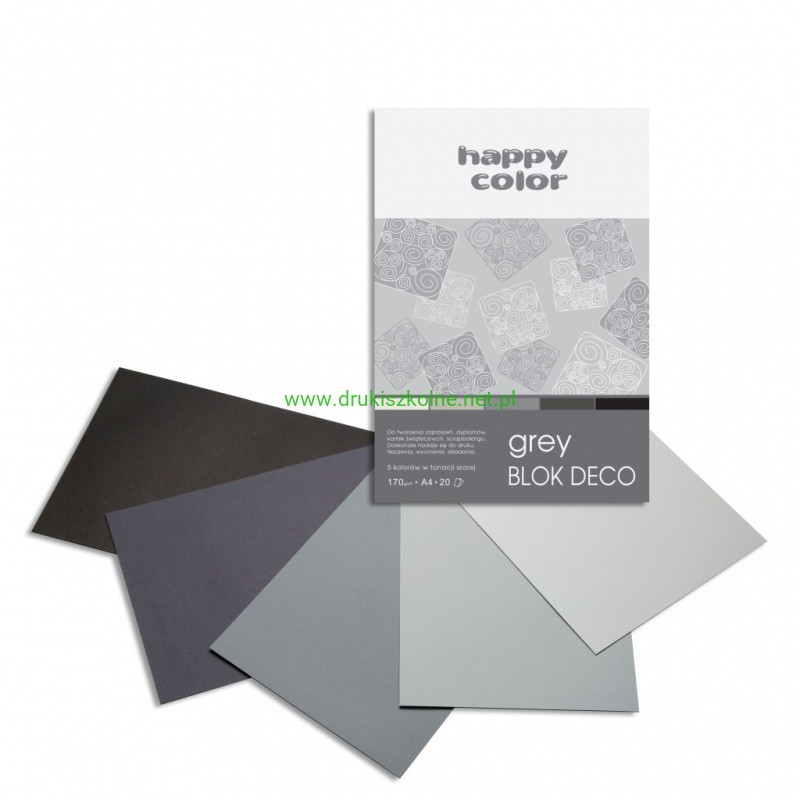 Blok Deco Grey A4, 170g, 20 ark, 5 kol. tonacja szara, Happy Color