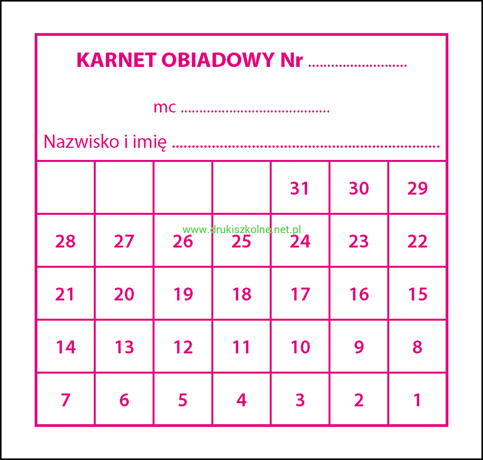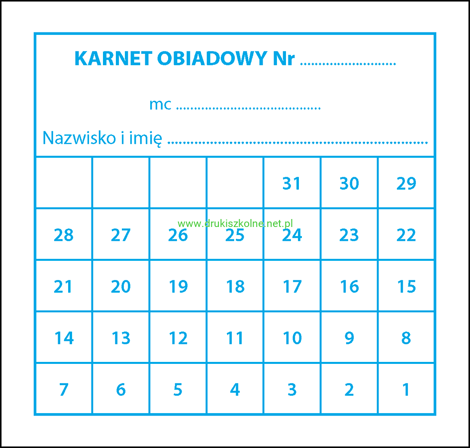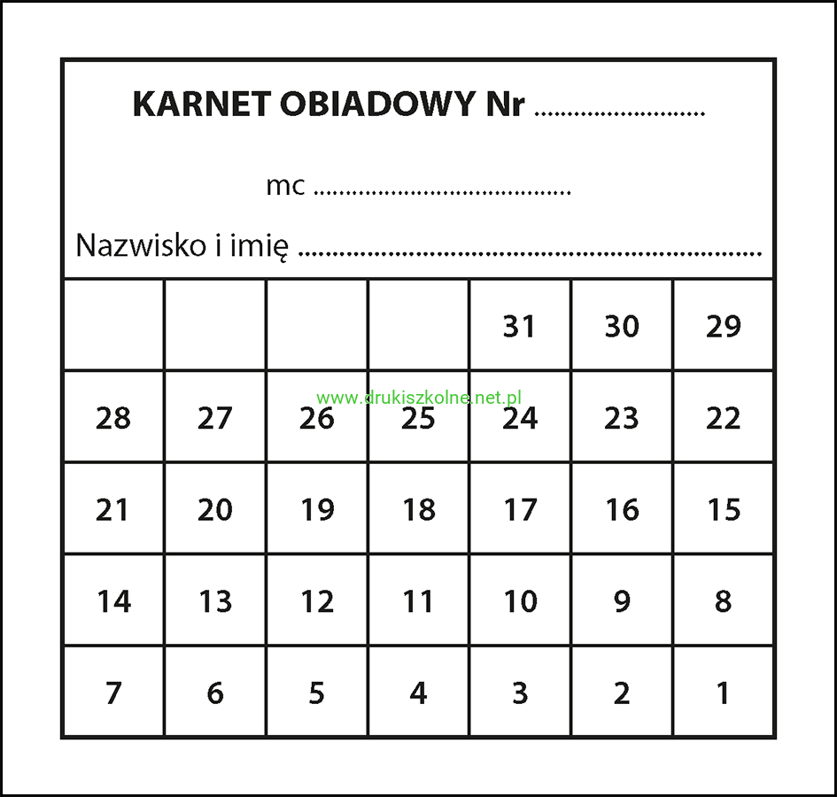 Bony (karnety) obiadowe - pakiet 100 szt. w jednym wybranym kolorze, przeznaczone dla stołówek i punktów zbiorowego żywienia wydających posiłki. Format A6 (105 mm x 100 mm), wydrukowane na kartonie offsetowym, dostępne w sześciu kolorach: czarnym, czerwonym, niebieskim, ciemnożółtym, purpurowym, zielonym. Przy zamówieniu proszę podać wybrane kolory kuponów w uwagach do zamówienia.