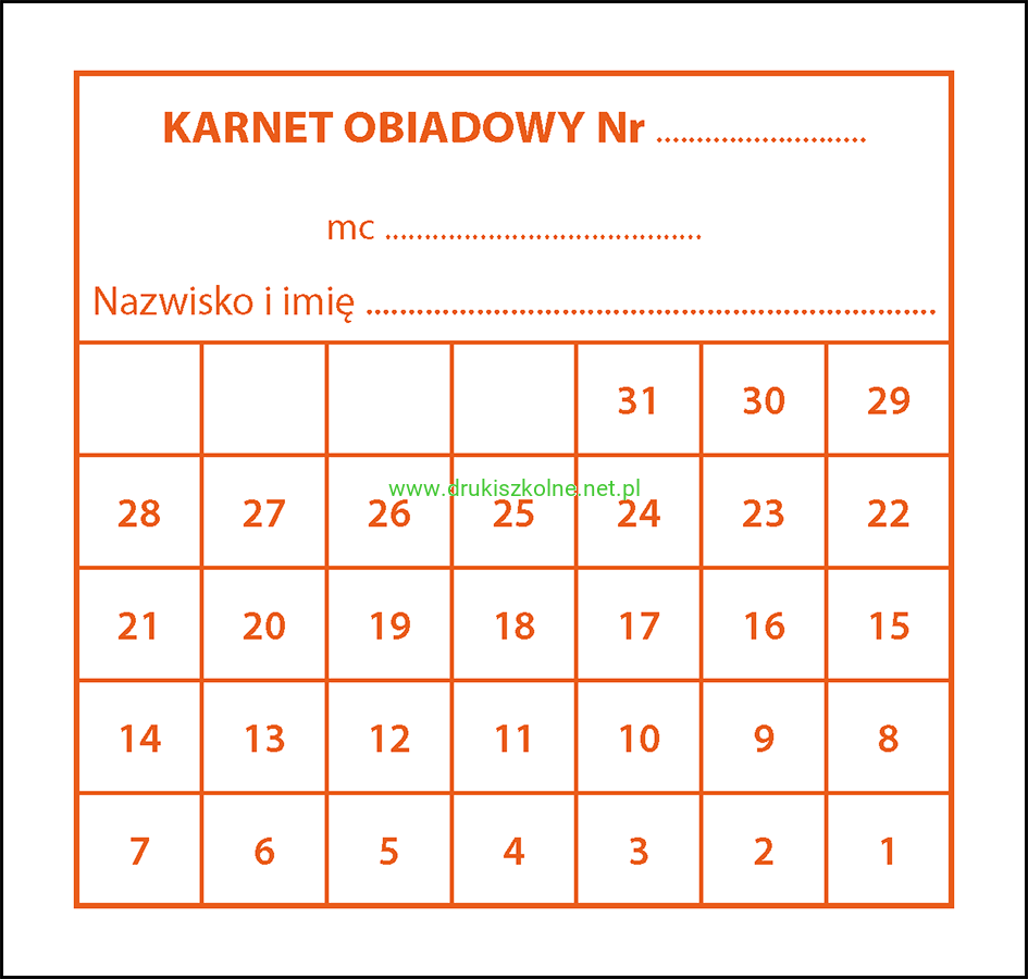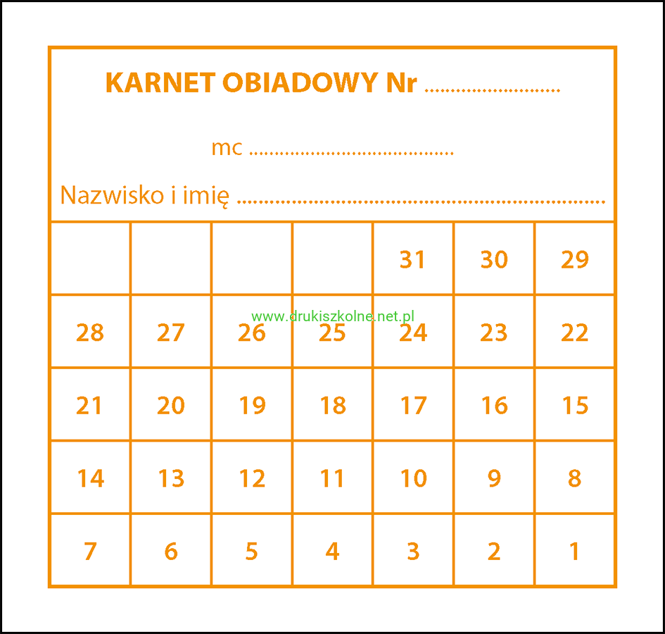 Bony (karnety) obiadowe - pakiet 100 szt. w jednym wybranym kolorze