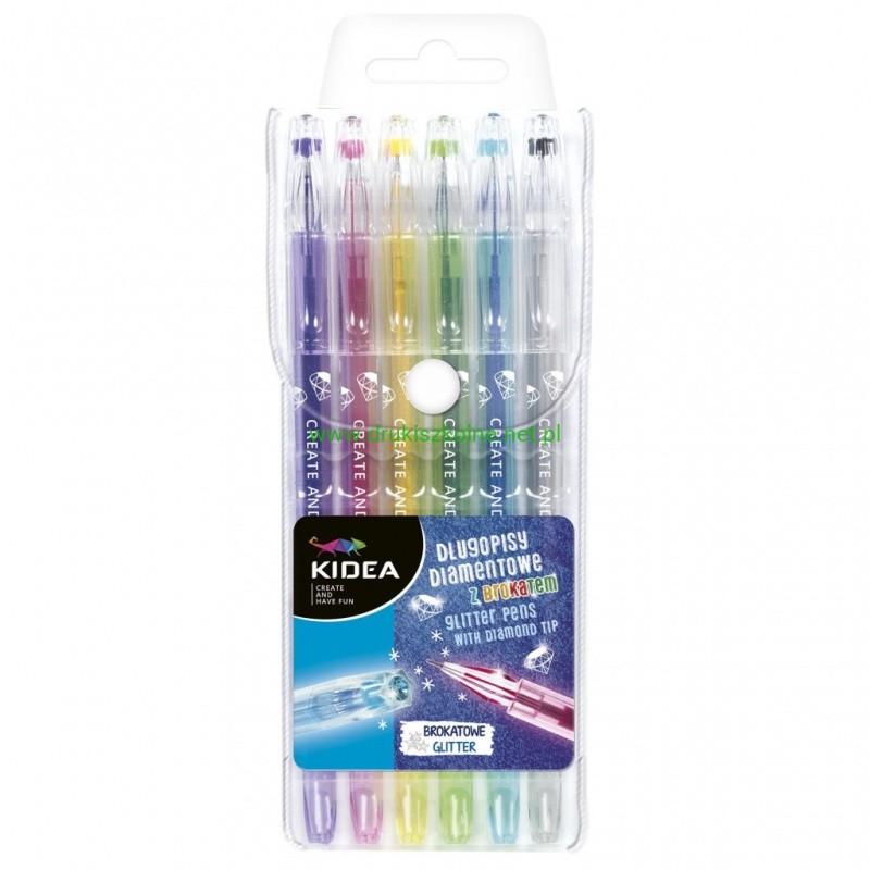 DŁUGOPISY DIAMENTOWE Z BROKATEM 6 KOLORÓW KIDEA