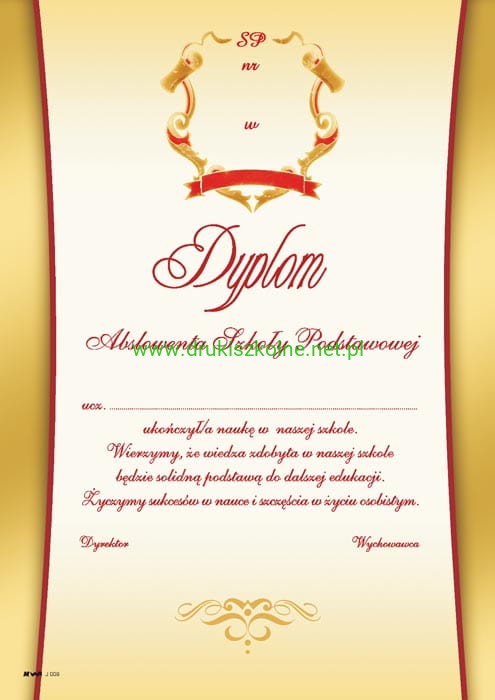 Dyplom dla absolwenta szkoły podstawowej. Dyplom wykonany z sztywnego kartonu ozdobnego. Format dyplomu - A4. Pełno kolorowy, jednostronny nadruk. Dyplom nadaje się się do personalizacji za pomocą drukarek atramentowych i laserowych, produkt najwyższej jakości. Surowce stosowane do produkcji oferowanych przez nas dyplomów, to najlepsze na rynku kartony ozdobne, gwarantujące najwyższą jakość oferowanych przez nas wyrobów. Nowoczesne technologie poligraficzne, zapewniają estetyczny wygląd Dyplomów oraz pełne bezpieczeństwo w kontakcie z naszymi produktami.