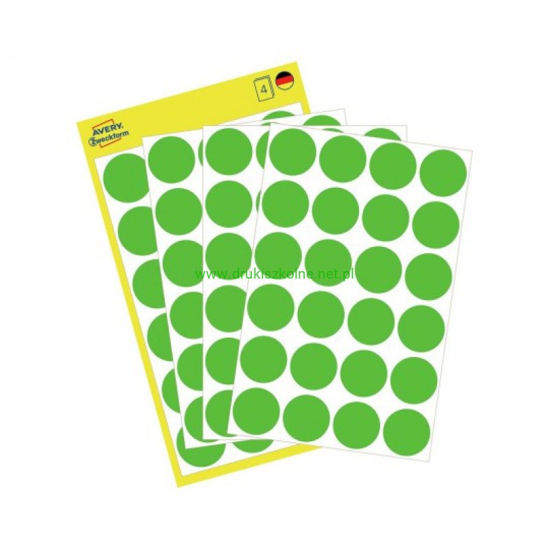 ETYKIETY KÓŁKA śr.18mm.4ark.ZIELONE USUWALNE AVERY ZWECKFORM