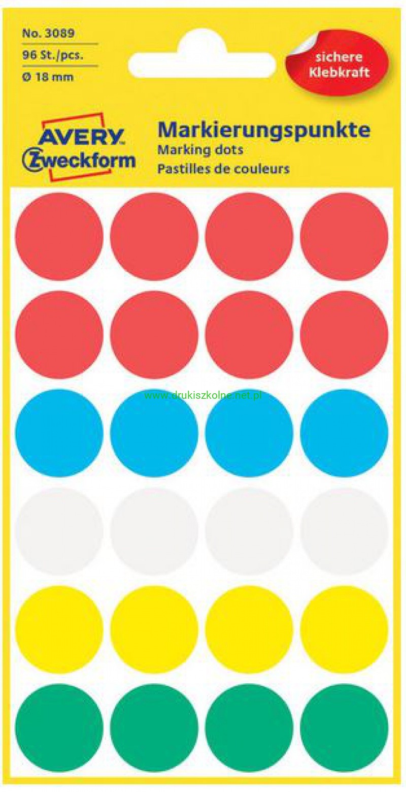 ETYKIETY KÓŁKA śr.18mm.96szt.MIX KOLORÓW AVERY ZWECKFORM