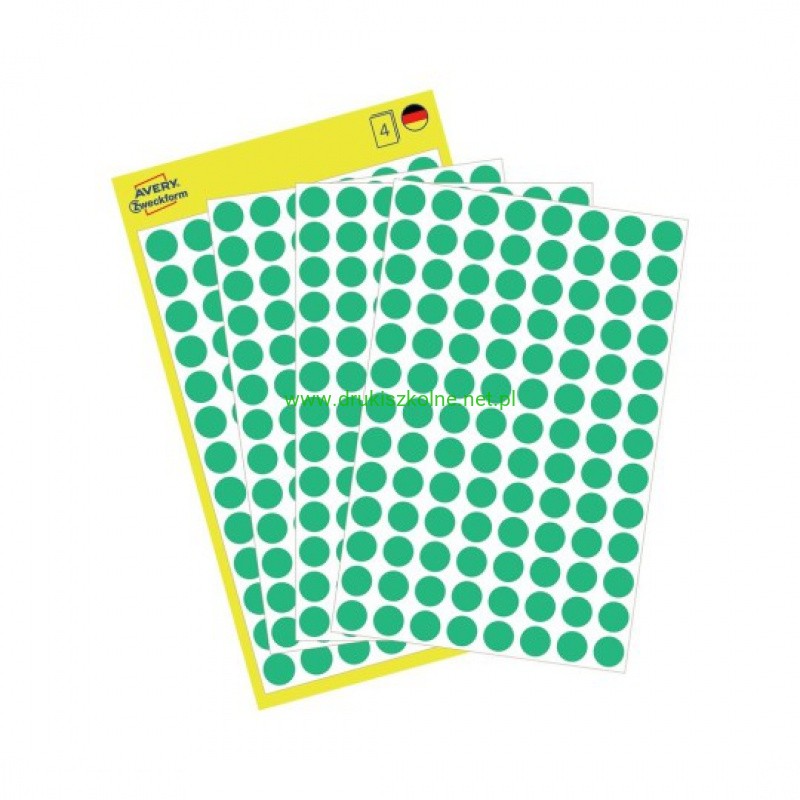 ETYKIETY KÓŁKA śr.8mm.4ark.ZIELONE AVERY ZWECKFORM