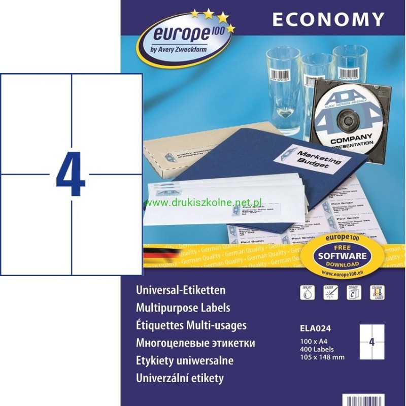 ETYKIETY UNIWERSALNE EUROPE A4 105x148mm.100ark. AVERY ZWECKFORM
