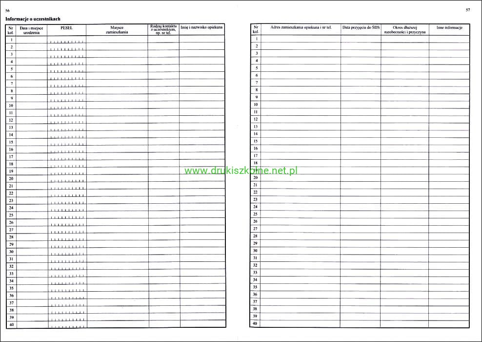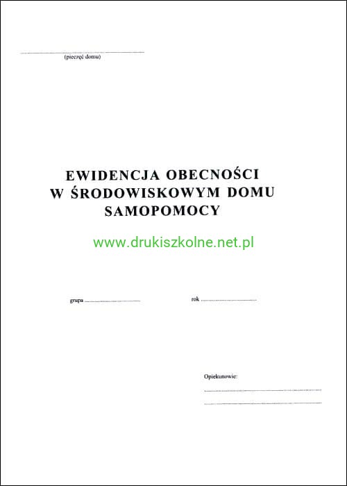 Ewidencja obecności w środowiskowym domu samopomocy, format A4, 32 str. miękka kartonowa oprawa