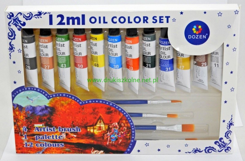 FARBY OLEJNE 12 KOLORÓW 12ml + 4 PĘDZLE