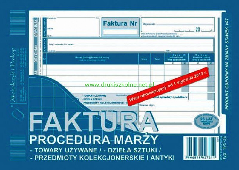 Faktura - procedura marży: towary używane, dzieła sztuki, przedmioty kolekcjonerskie i antyki