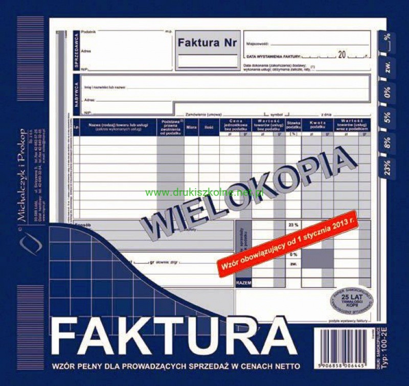 Faktura wzór pełny dla prowadzących sprzedaż w cenach netto