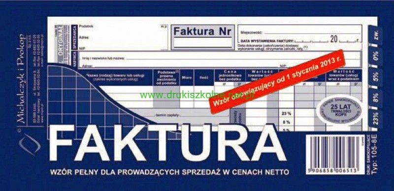 Faktura wzór pełny dla prowadzących sprzedaż w cenach netto