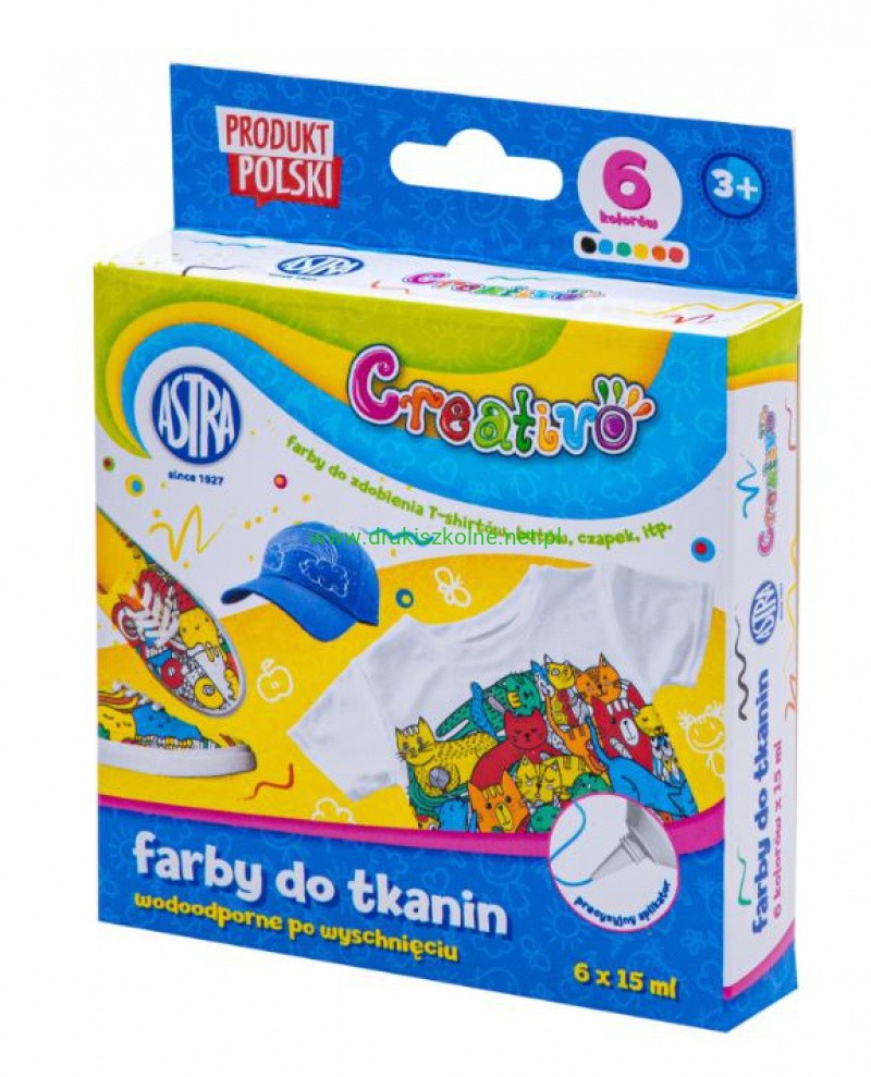 Farby do tkanin, zest. 6 x 15ml, CREATIVO ASTRA