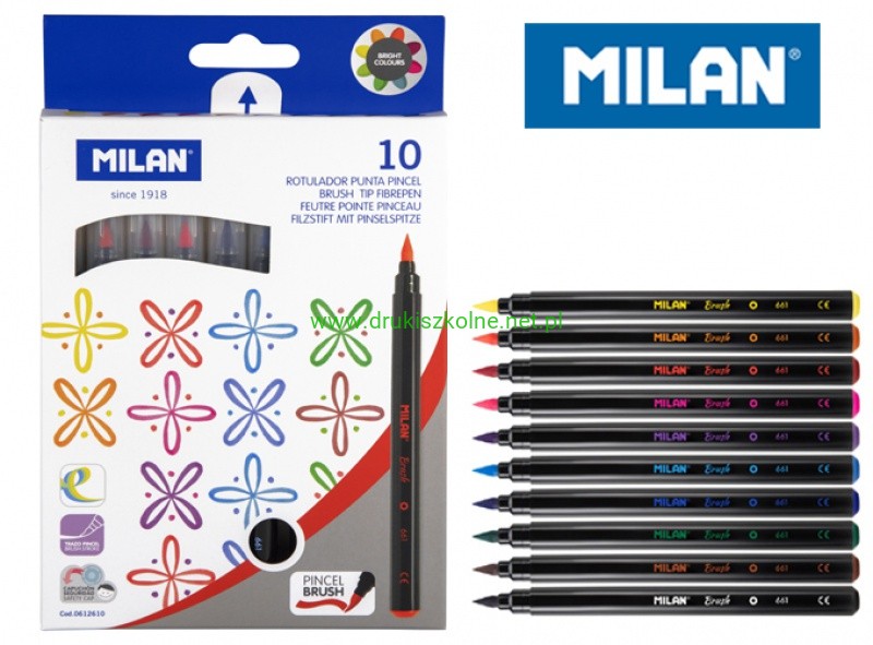 Flamastry MILAN BRUSH 661 pędzelkowe 10 kolorów w kartonowym opakowaniu