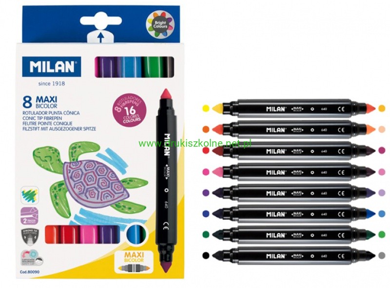 Flamastry MILAN MAXI BICOLOR 640, dwustronne, 8 szt., 16 kolorów w kartonowym opakowaniu