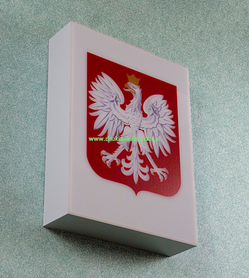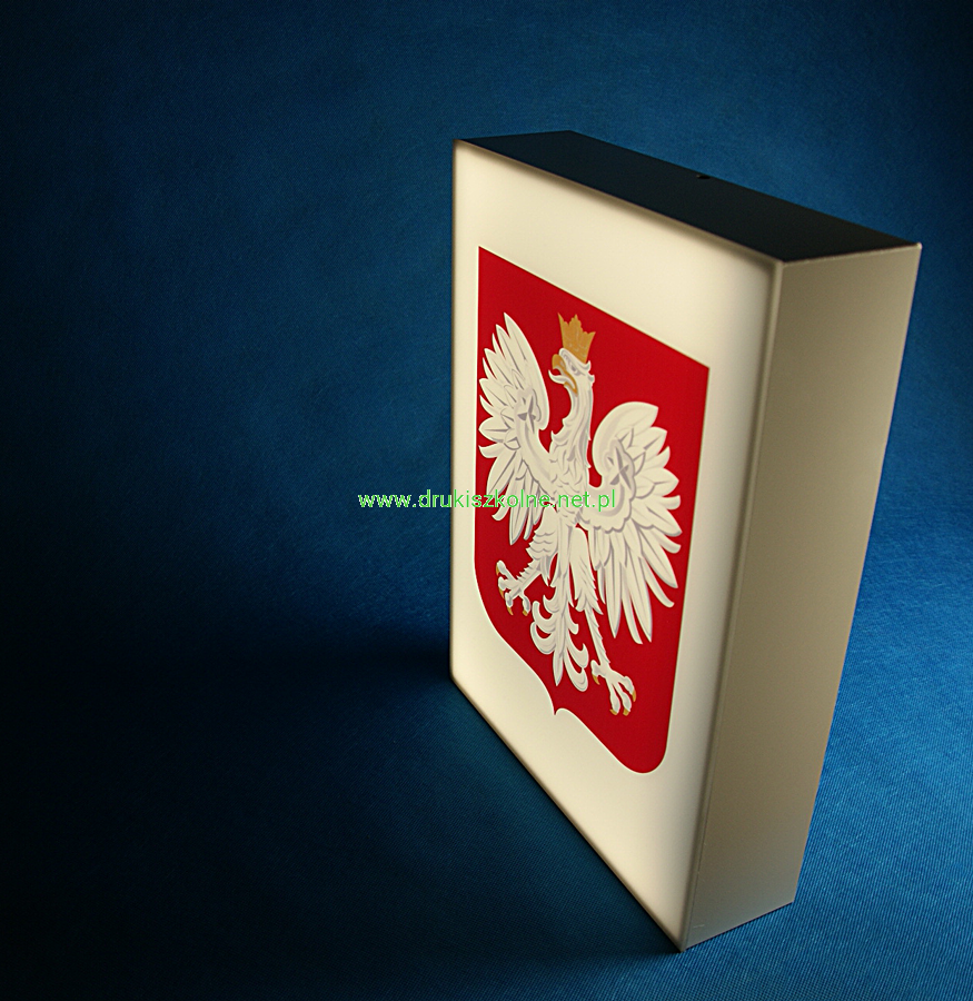 Godło Rzeczpospolitej Polskiej (Godło Polski) podświetlane diodami LED na kasetonie 30 cm x 40 cm x 10 cm do samodzielnego montażu