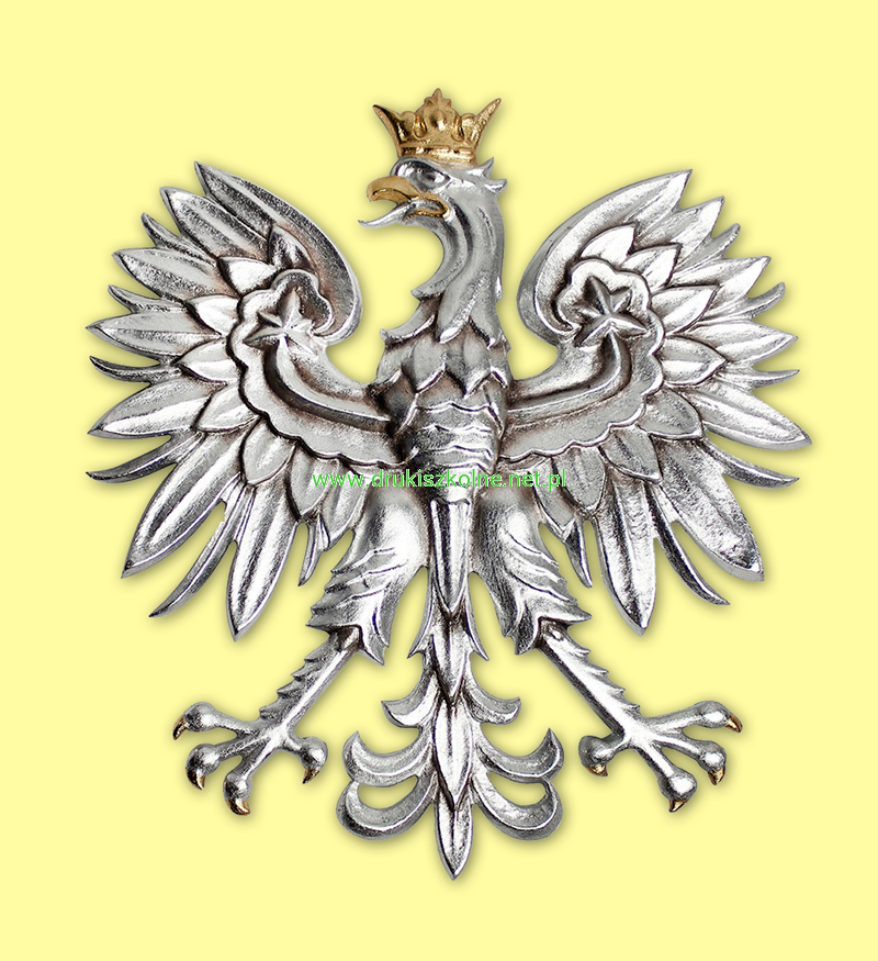 Godło Rzeczpospolitej Polskiej (Godło Polski) srebrzone z elementami złoconymi w trzech różnych wymiarach. Godło wykonano jako odlew z aluminium. Orzeł jest srebrzony a korona i pazury orła są złocone, orzeł jest oxydowany i lakierowany bezbarwnie. Na rewersie znajduje się uchwyt umożliwiający montaż godła na ścianie. Wypukłe godło państwowe stanowi piękną ozdobę dla urzędów, sądów, kancelarii i gabinetów dyrektorów placówek oświatowych. Godło wyprodukowano zgodnie z ustawą o godle, barwach i hymnie Rzeczpospolitej. Ekskluzywny produkt najwyższej jakości.