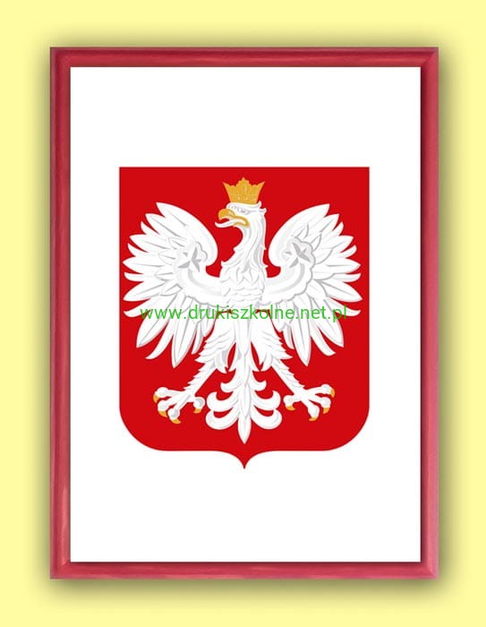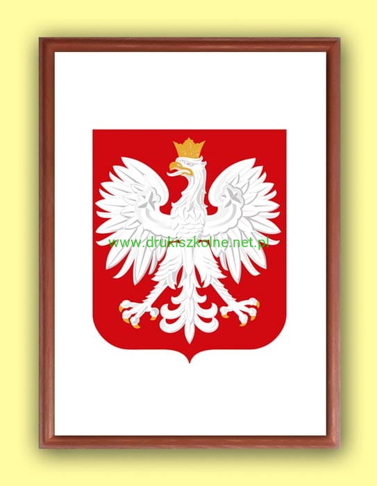 Godło Rzeczpospolitej Polskiej (Godło Polski) w ołówkowej drewnianej ramce A3+ przeznaczone dla szkół i urzędów. Godło wydrukowano na kartonie offsetowym i oprawiono w ramkę drewnianą w wybranym kolorze. Godło przystosowane jest do powieszenia na ścianie. Godło wyprodukowano zgodnie z ustawą o godle, barwach i hymnie Rzeczpospolitej.