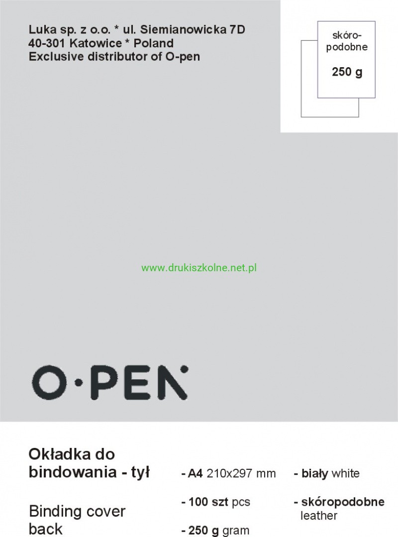 KARTON OKŁADKA DO BINDOWANIA TYŁ 250 g 100szt BIAŁE
