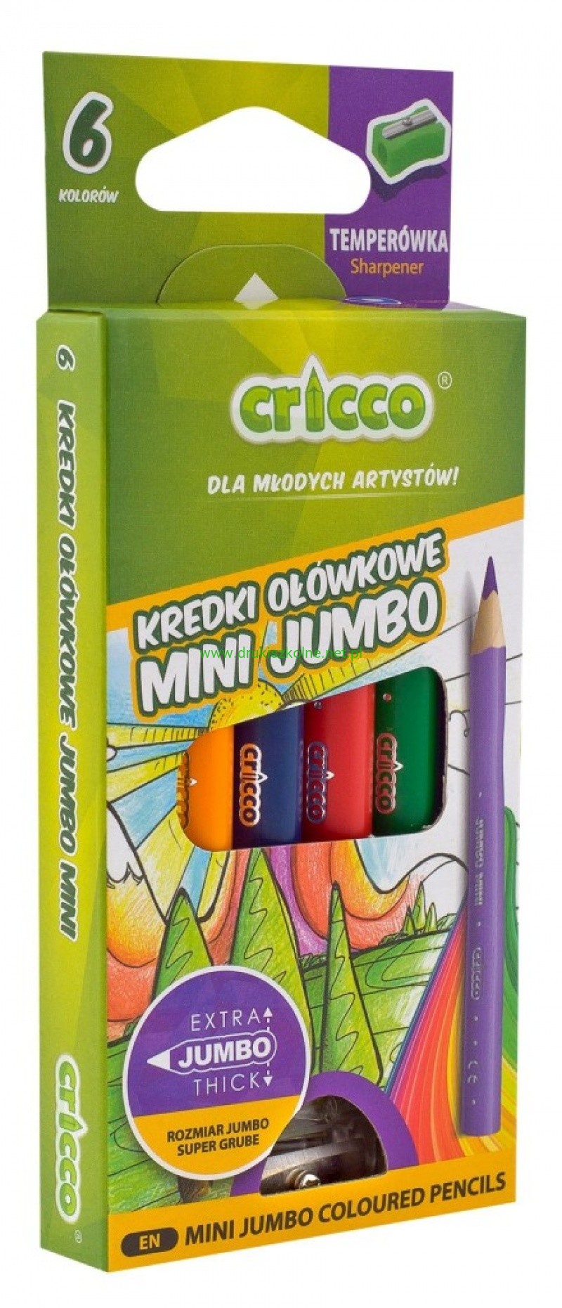 KREDKI CRICCO TRÓJKĄTNE MINI JUMBO 6-KOL. OP. KARTONOWE Z TEMPERÓWKĄ