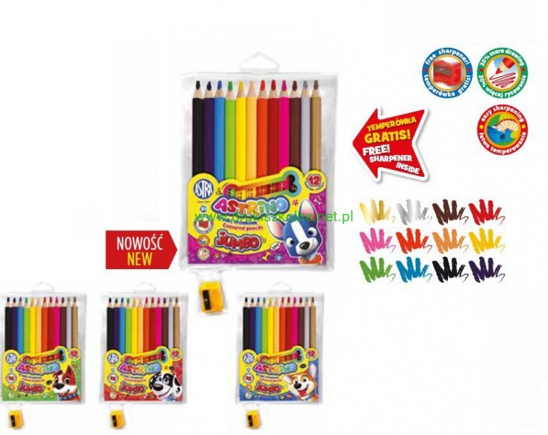 KREDKI OŁÓWKOWE ASTRINO OKR.JUMBO 12KOL.DR.+TEMP.