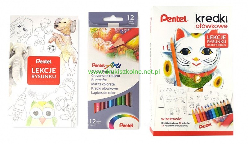 KREDKI OŁÓWKOWE PENTEL 12KOL.CB8-12+LEKCJE RYSUNKU