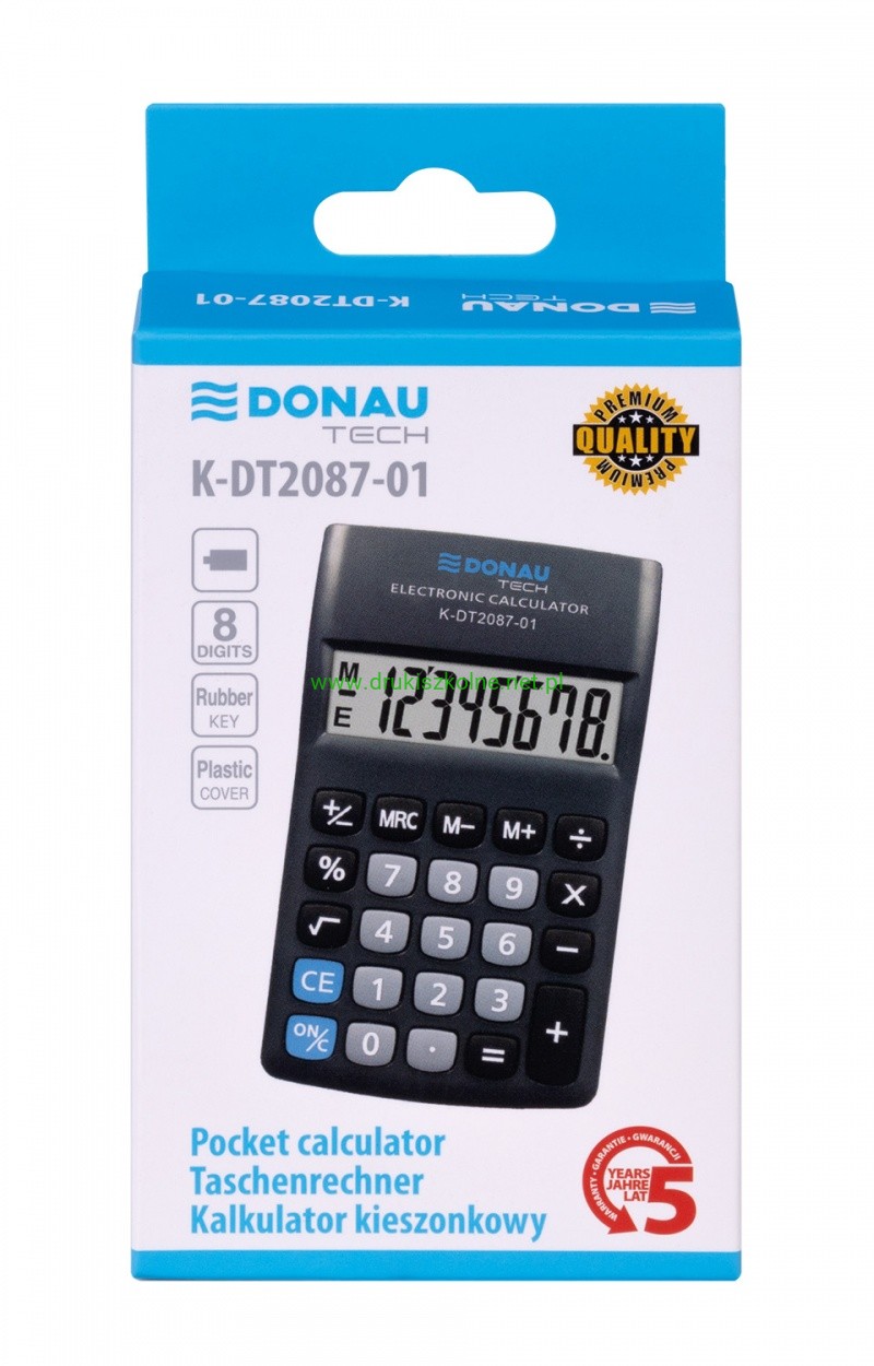 Kalkulator kieszonkowy DONAU TECH, 8-cyfr. wyświetlacz, wym. 116x68x18 mm, czarny