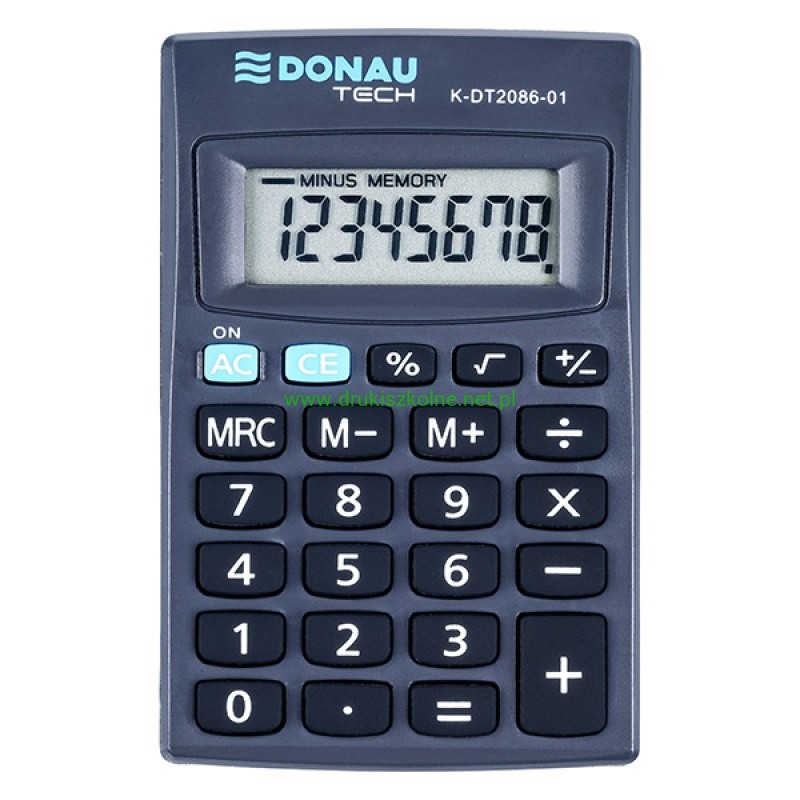 Kalkulator kieszonkowy DONAU TECH, 8-cyfr. wyświetlacz, wym. 85x56x9 mm, czarny