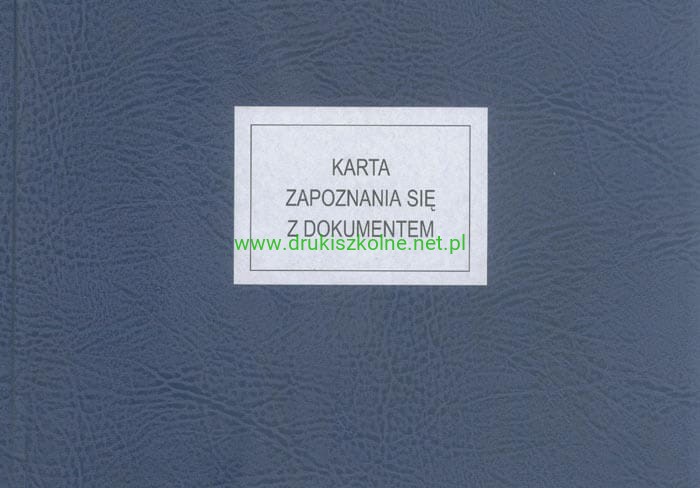 Karta zapoznania się z dokumentem, format A4, 100 str., twarda skóropodobna oprawa, różne kolory okładek (wybrane kolory proszę podać w uwagach do zamówienia - w przypadku braku informacji o wyborze kolorów, wysyłamy w kolorach losowo wybranych. W przypadku braku któregoś koloru proponujemy inne kolory).
