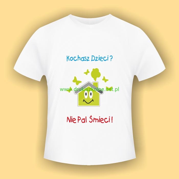 "Kochasz dzieci, nie pal śmieci" - biała koszulka bawełniana (t-shirt) z kolorowym nadrukiem