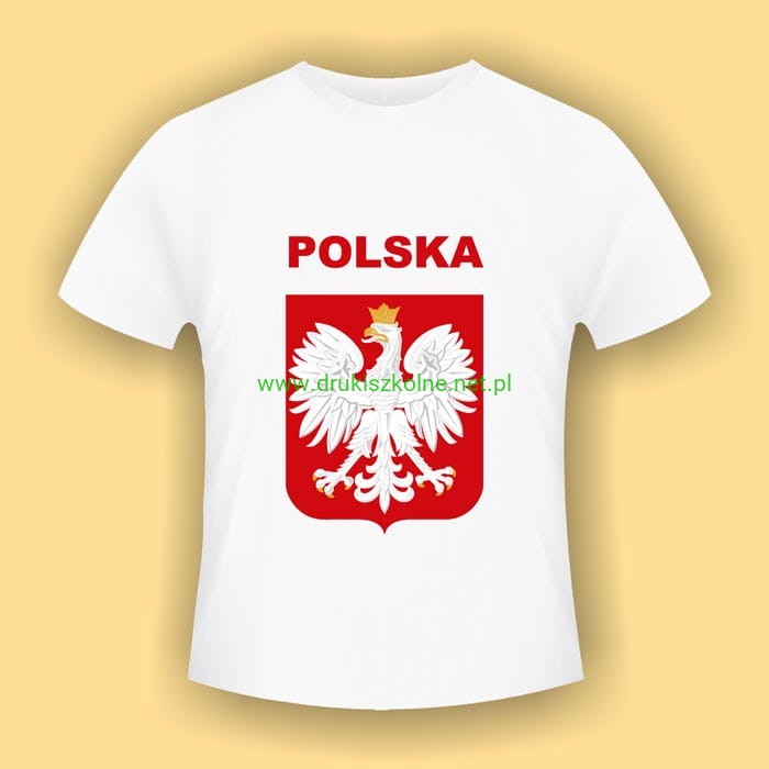 Koszulka z Godłem Polski - biała koszulka bawełniana (t-shirt) najwyższej jakości z trwałym kolorowym nadrukiem.