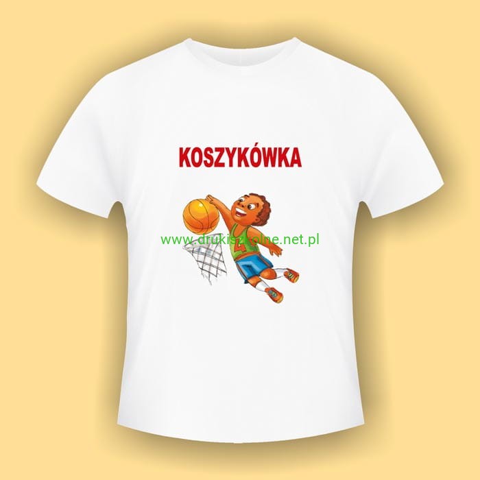 Koszykówka - biała koszulka bawełniana (t-shirt) z kolorowym nadrukiem