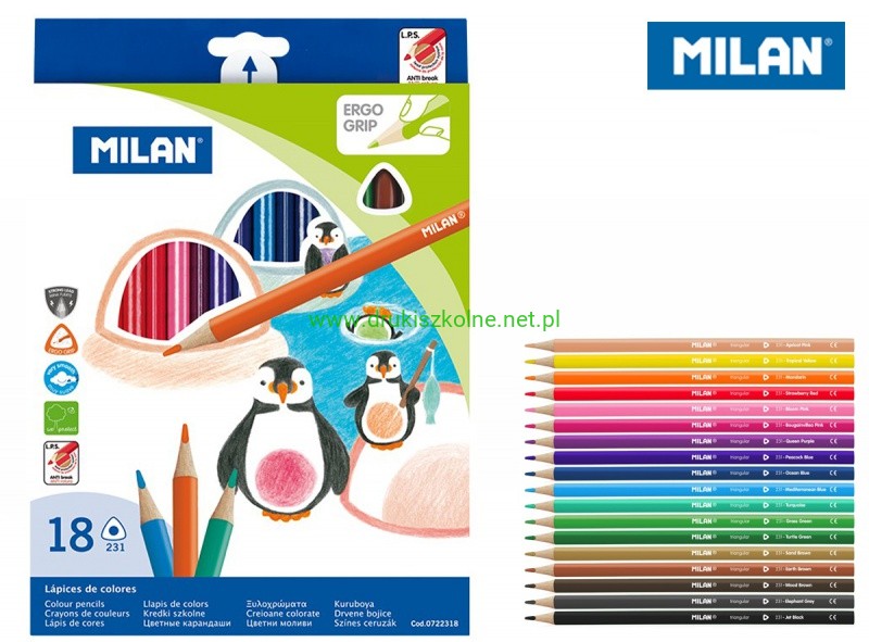 Kredki ołówkowe MILAN 231 trójkątne, 18 kolorów w kartonowym opakowaniu