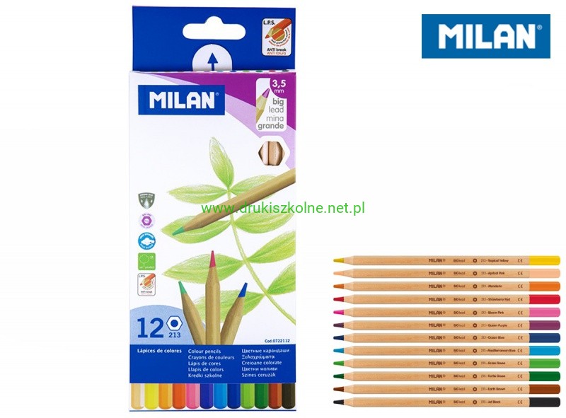Kredki ołówkowe MILAN BIG LEAD 213 sześciokątne, 12 kolorów w kartonowym opakowaniu
