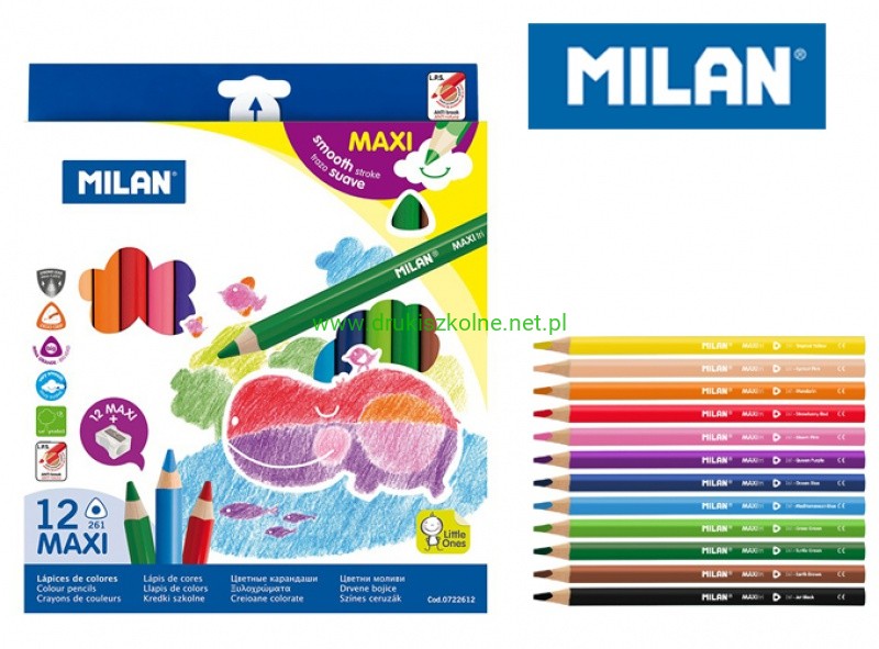 Kredki ołówkowe MILAN MAXI 261 trójkątne, 12 kolorów w kartonowym opakowaniu