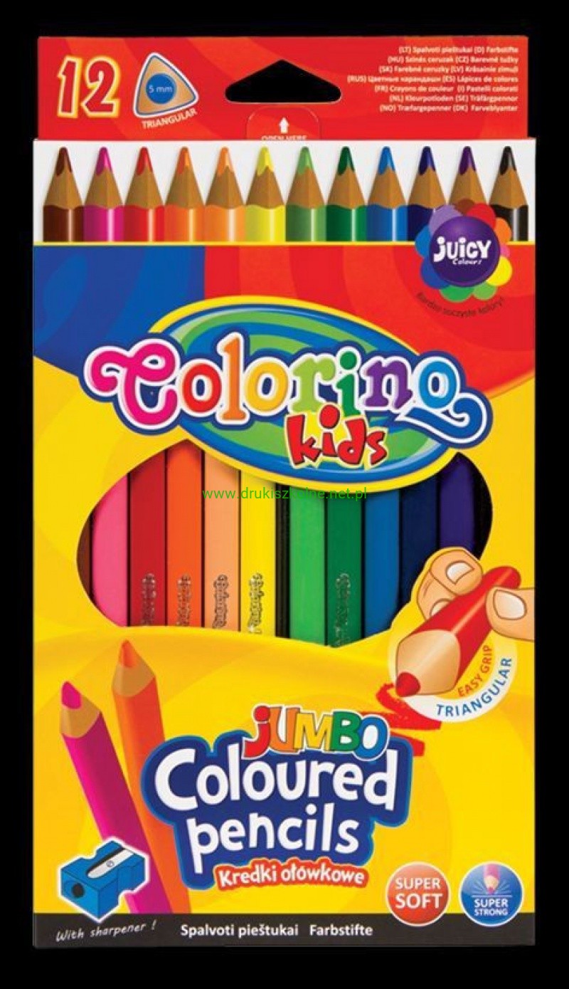 Kredki ołówkowe trójkątne 17,5 cm Jumbo 12 kol + tem. Colorino Kids