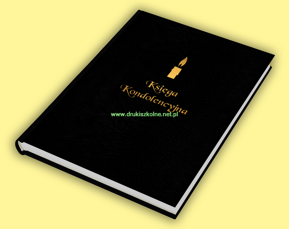 Księga Kondolencyjna, Format A4, wnętrze: 120 białych kart (240 stron), ekskluzywna twarda oprawa przeszywana nićmi, imitacja skóry, kolor czarny, złocony ozdobny napis "Księga Kondolencyjna". Bardzo solidnie wykonanie. Produkt najwyższej klasy.