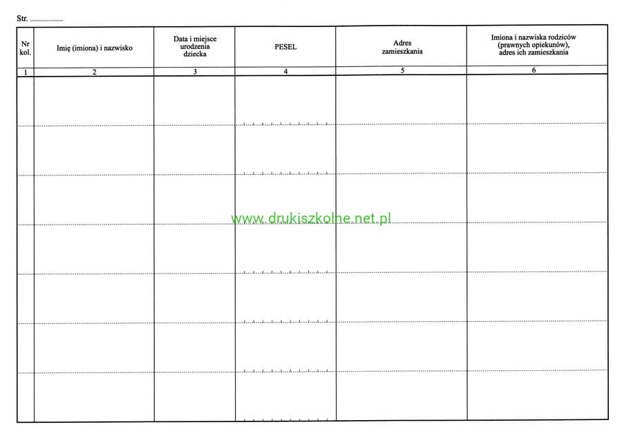 1) według roku urodzenia: imię (imiona) i nazwisko, datę i miejsce urodzenia, numer PESEL oraz adres zamieszkania dziecka, a także imiona i nazwiska rodziców oraz adresy ich zamieszkania, jeżeli są różne od adresu zamieszkania dziecka;