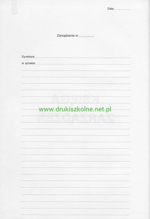 Księga zarządzeń, twarda oprawa skóropodobna, A4 (192 str.), różne kolory okładek (wybrane kolory proszę podać w uwagach do zamówienia - w przypadku braku informacji o wyborze kolorów, wysyłamy w kolorach losowo wybranych. W przypadku braku któregoś koloru proponujemy inne kolory).