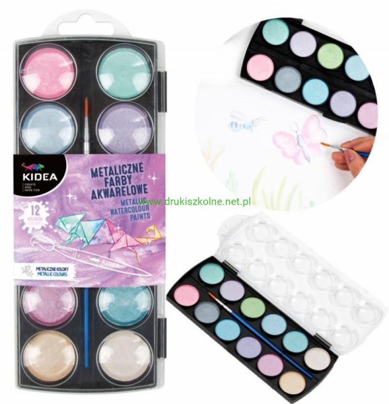 METALICZNE FARBY AKWARELOWE 12 KOLORÓW KIDEA