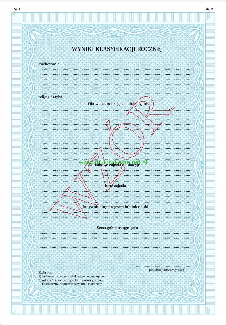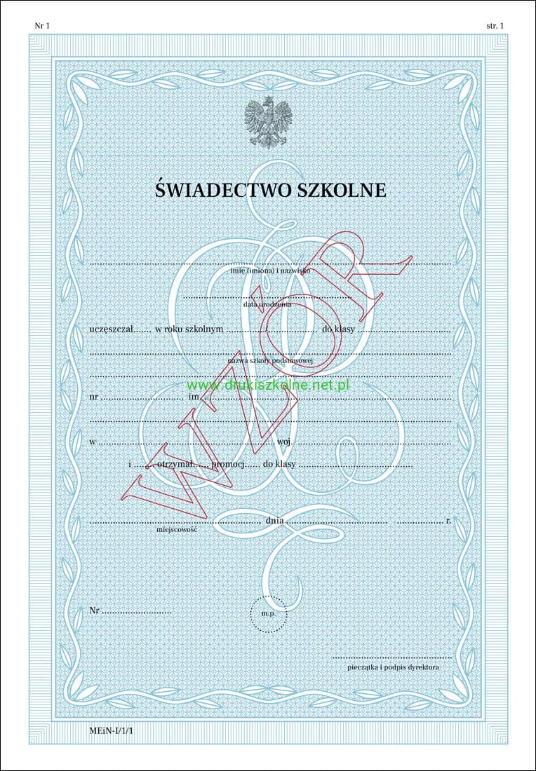 MEiN-I/1/1 - formularz świadectwa szkolnego