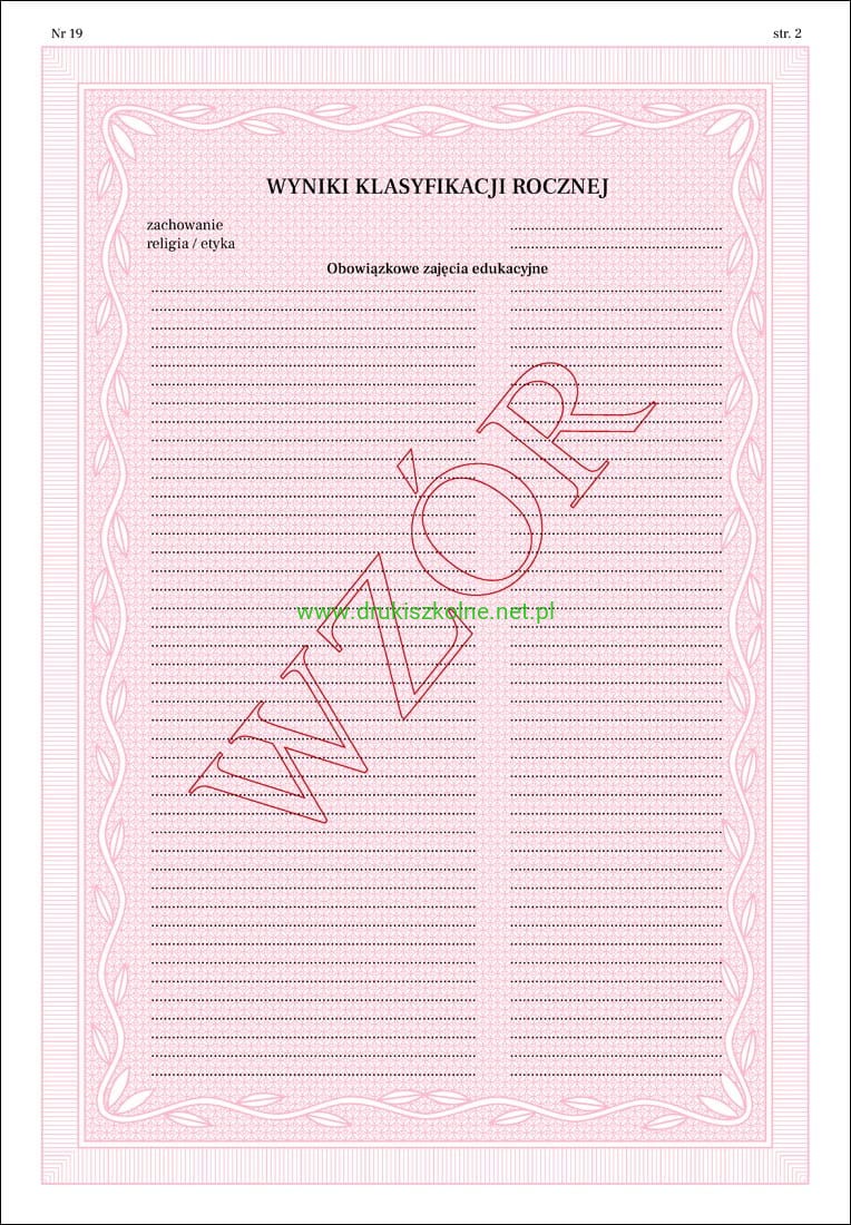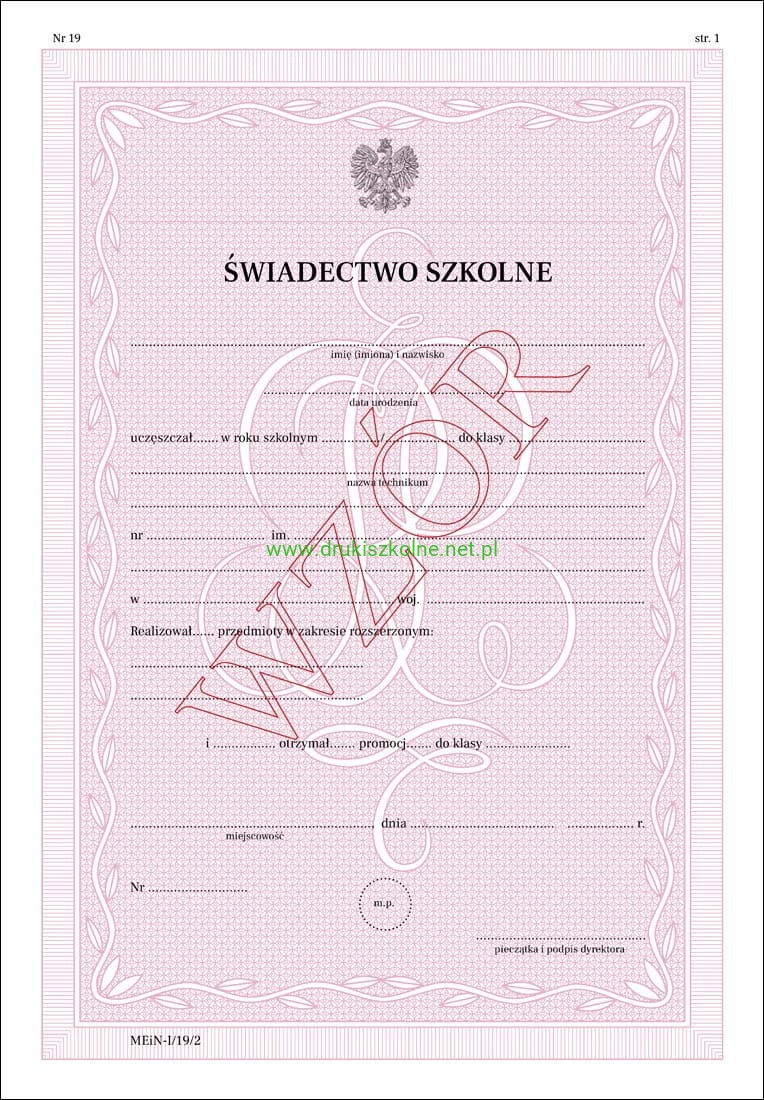 MEiN-I/19/2 - formularz świadectwa szkolnego