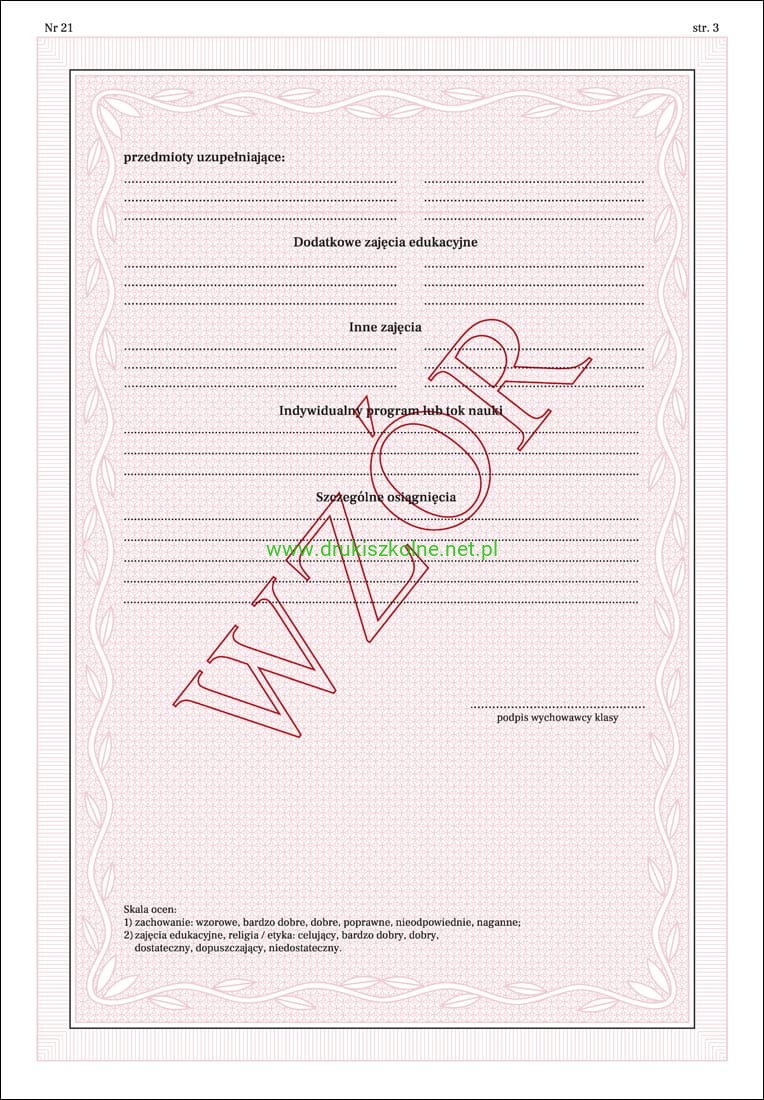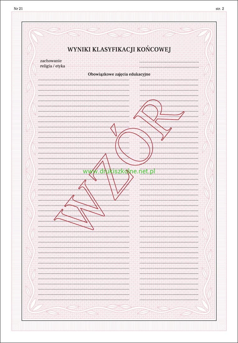MEiN-I/21/2 - formularz świadectwa szkolnego (numerowane)